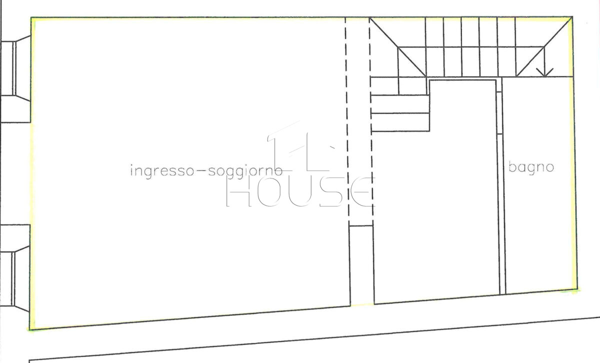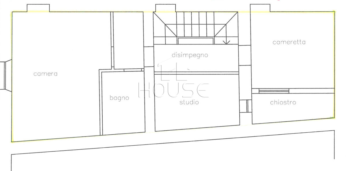 A piano terra, di 40 mq ca., si trovano una zona giorno con soggiorno, angolo cottura e bagno; a piano primo, di 60 mq ca., due camere da letto, uno studio, un secondo bagno e un terrazzino con affaccio sulla corte interna.